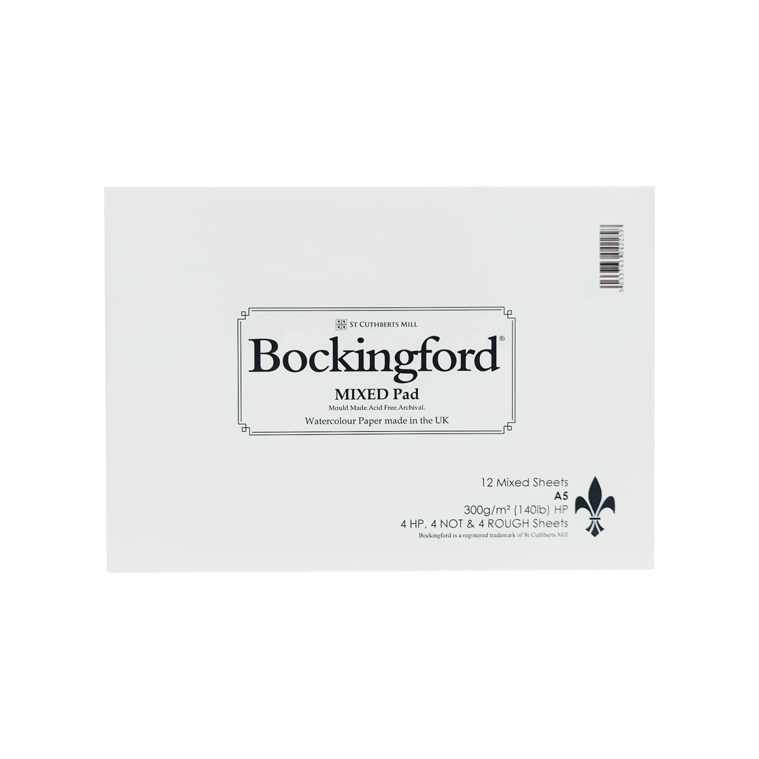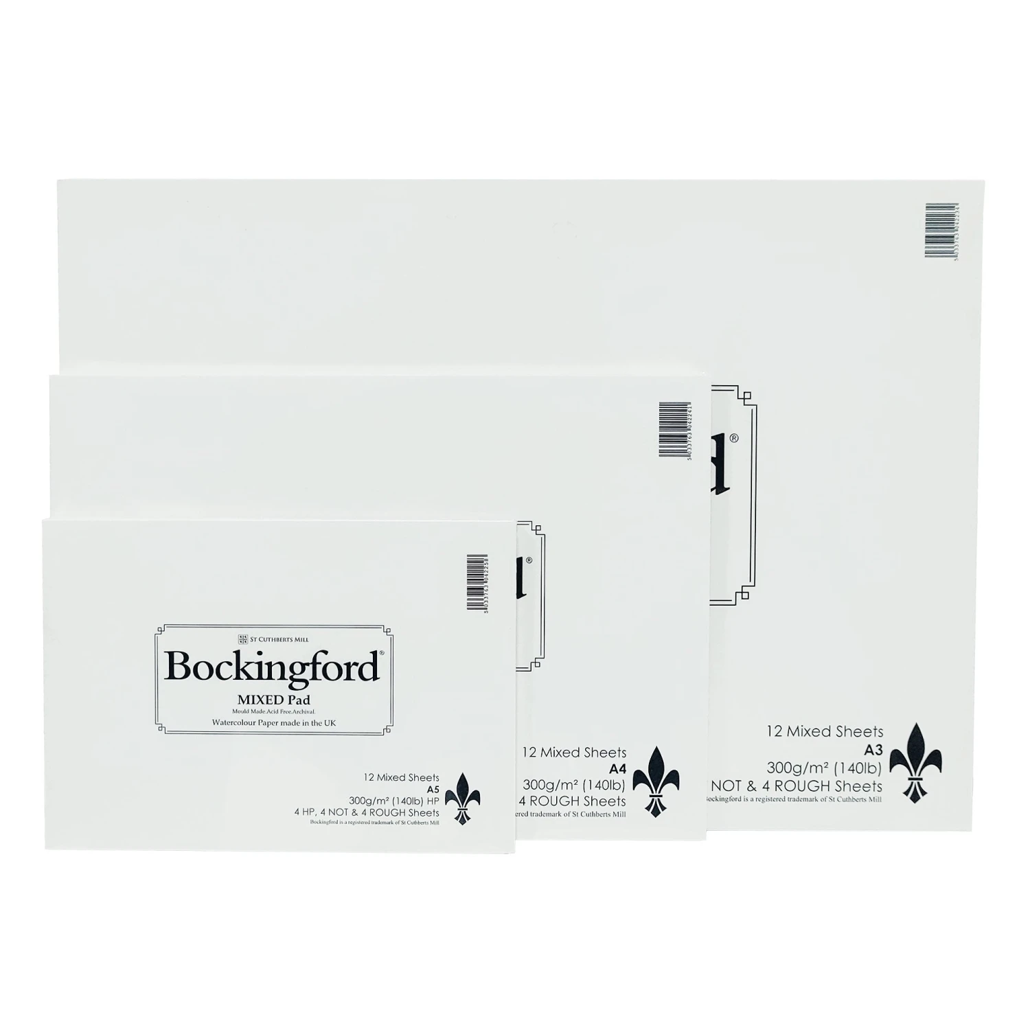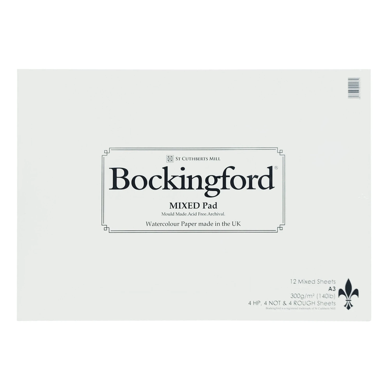 The Bockingford Watercolour Mixed Pads contain 12 sheets of 300gsm/140lb watercolour paper. Comprised of 4 sheets of Hot Pressed, NOT, and Rough paper. This is a high quality paper made using pure materials to archival standards. Fantastic for wet mediums like watercolour and inks.