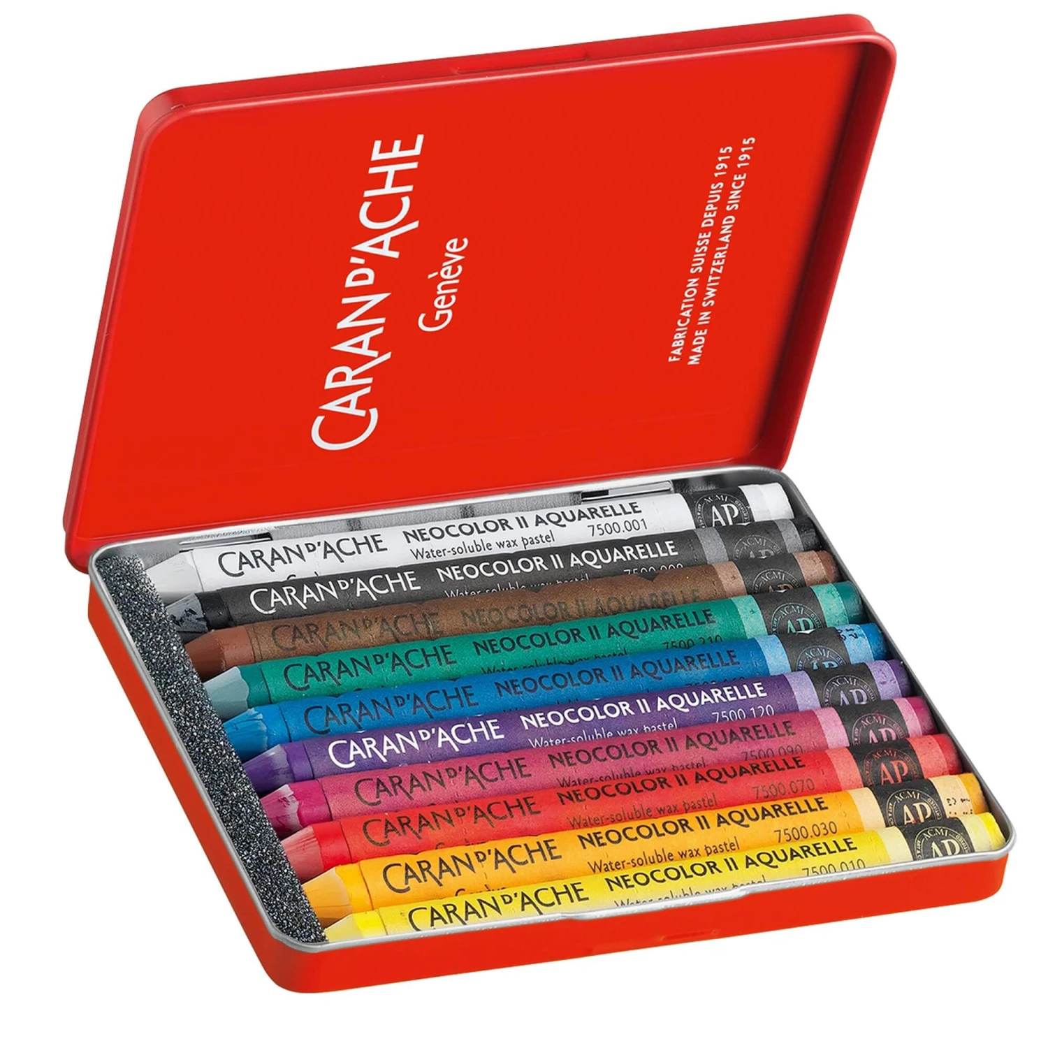 Caran d’Ache Neocolour is best suited for use on pastel paper or cold pressed watercolour paper where the paper’s soft texture can be best used. However, they can also be used on cardboard, wood, leather, or even stone, alongside many other materials.Â