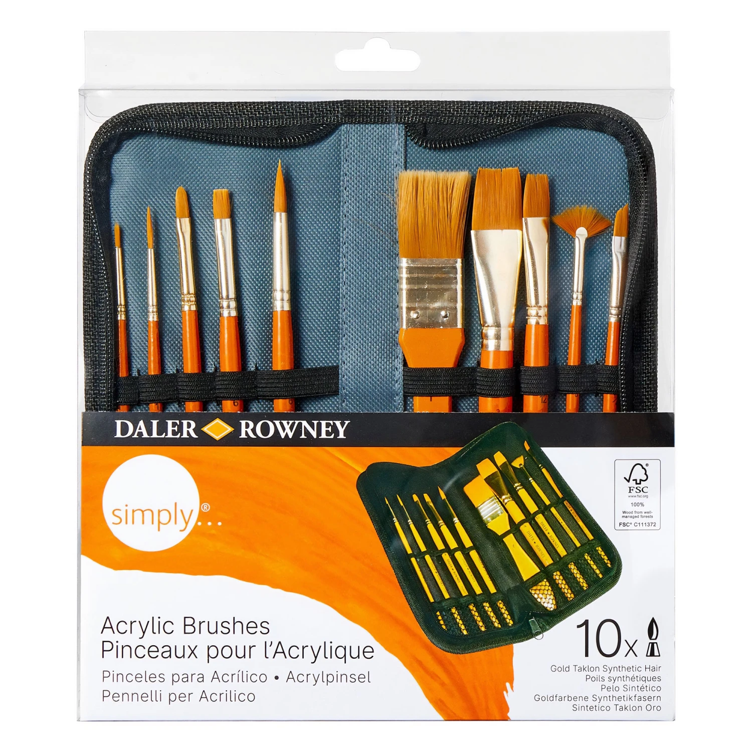 A selection of 10 short handled brushes, ideal for acrylic painting. The high quality case safely keeps the brushes together.