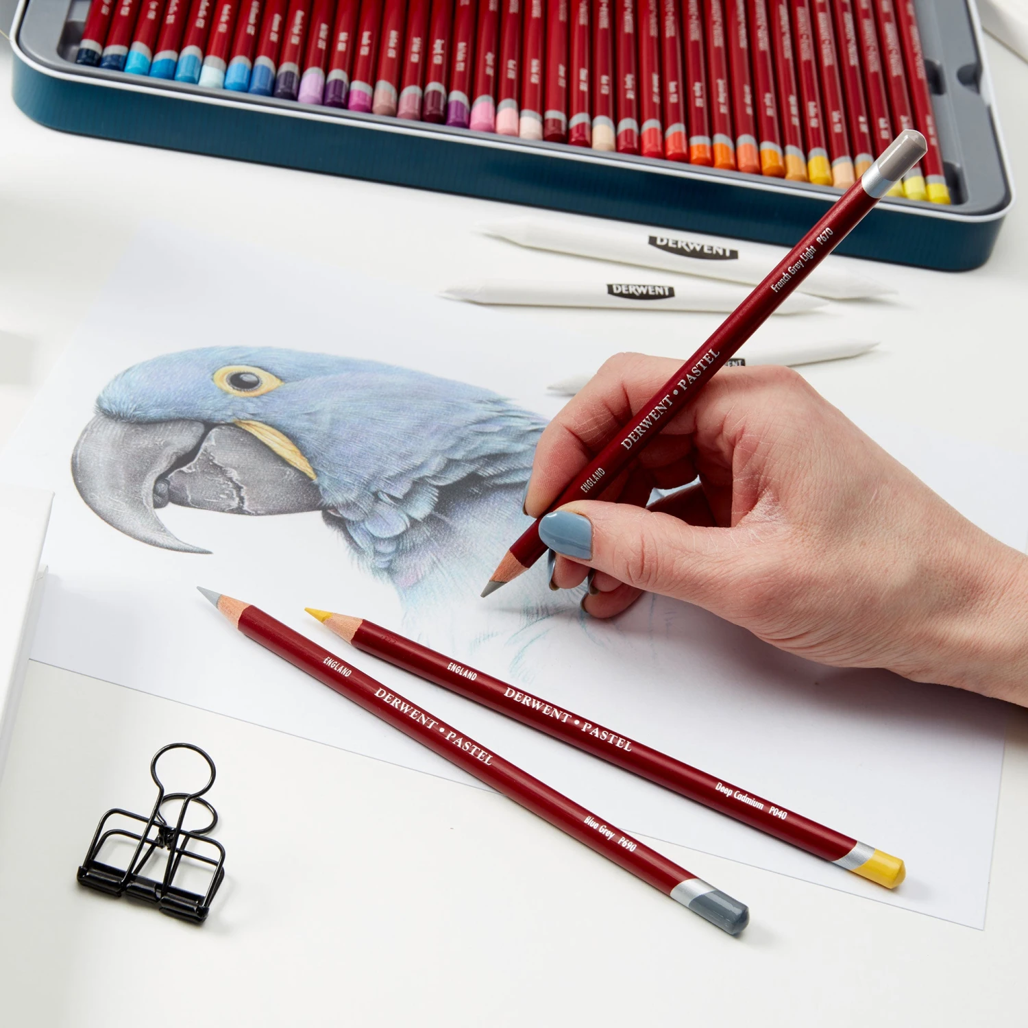 Derwent Pastel pencils provide the soft, powdery texture and velvety smooth finish of a top quality traditional pastel. But unlike conventional pastels, they are presented in a smooth round wood case for maximum control and ease of use. The pencils are ideal for mixing and blending.Â