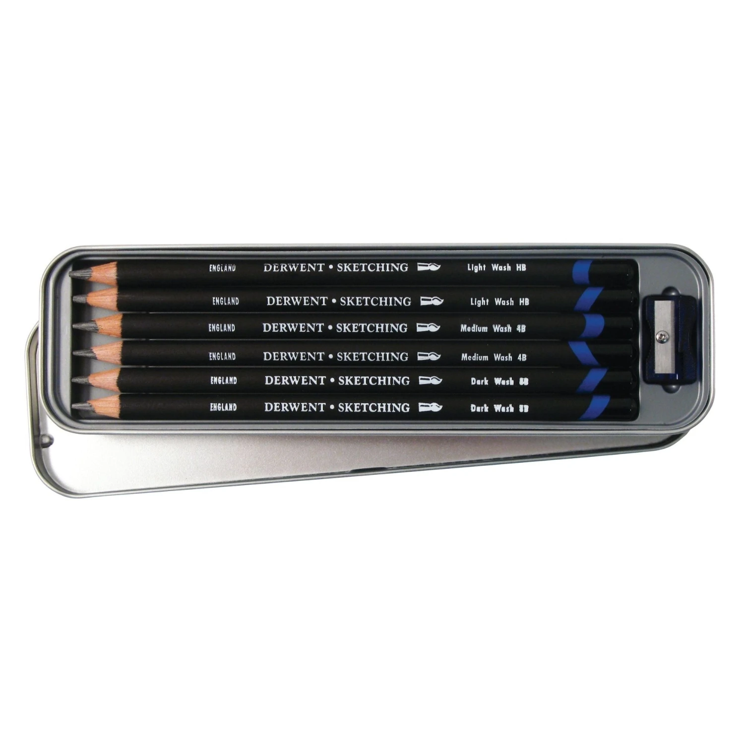 Six watersoluble sketching pencils, ideal for creating expressive tonal drawings and line and wash sketches.