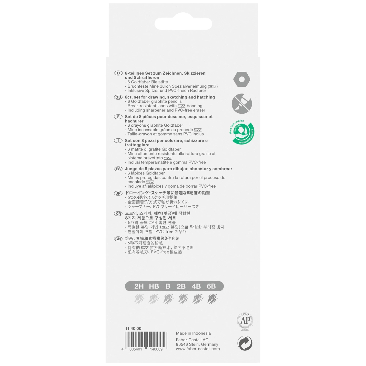 Faber-Castell Goldfaber Graphite Sketch set encompasses everything you need get started in drawing and sketching with pencils. It features a mix of hard and soft pencils for creating a variety of sharp and soft marks, as well as light and dark tones.