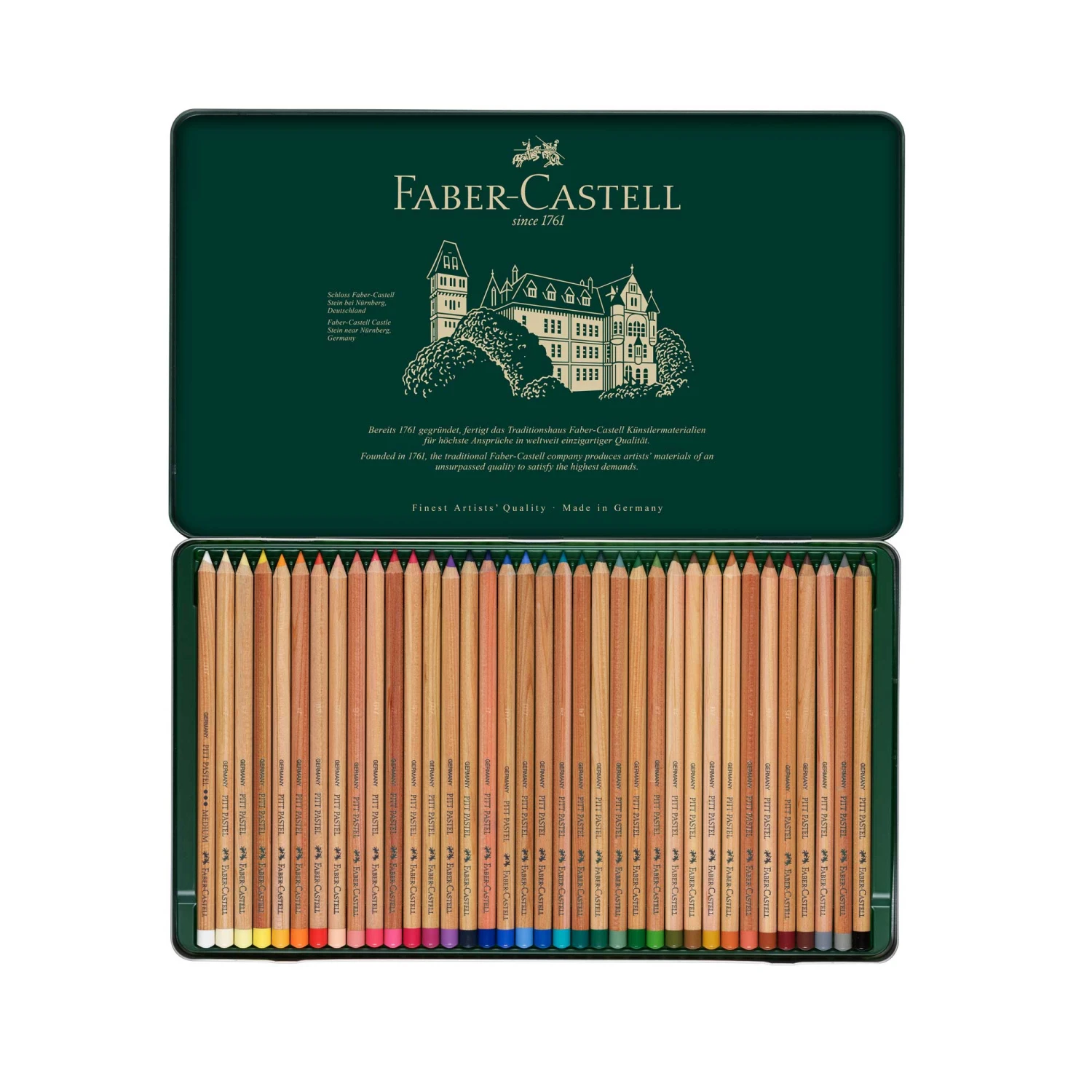 PITT pastel pencils have wax-free leads; drawings can be wiped just as with pastel crayons, so need to be fixed afterwards. The 60 bright colours contain a high proportion of pigment; they are highly light-fast and do not change colour appreciably when fixed. The compact pastel lead is perfect for hobby painters and professional artists, because it produces plenty of colour without being used up too fast.