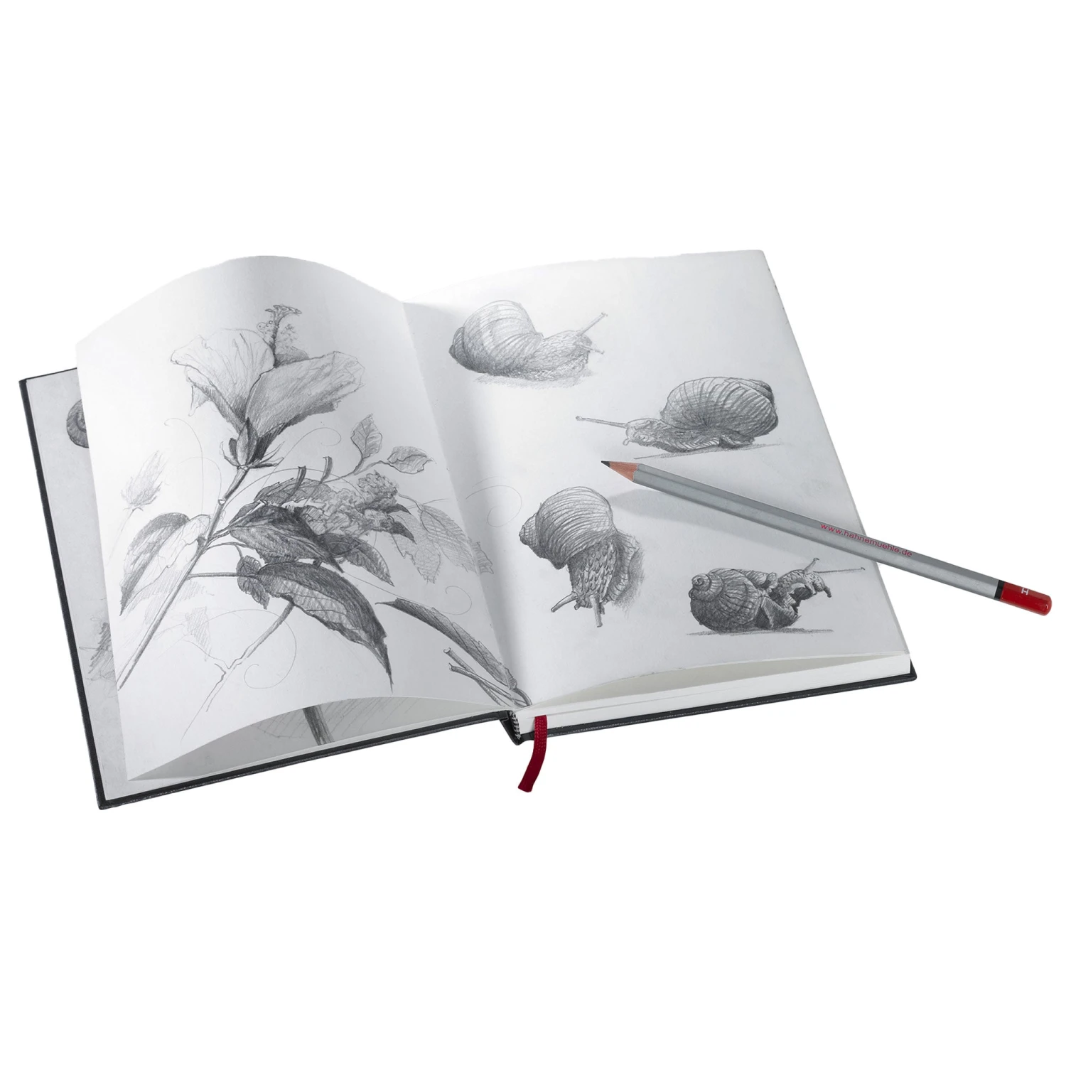 Natural white sketch paper with fine grain for defined pen control and delicate hatchings.