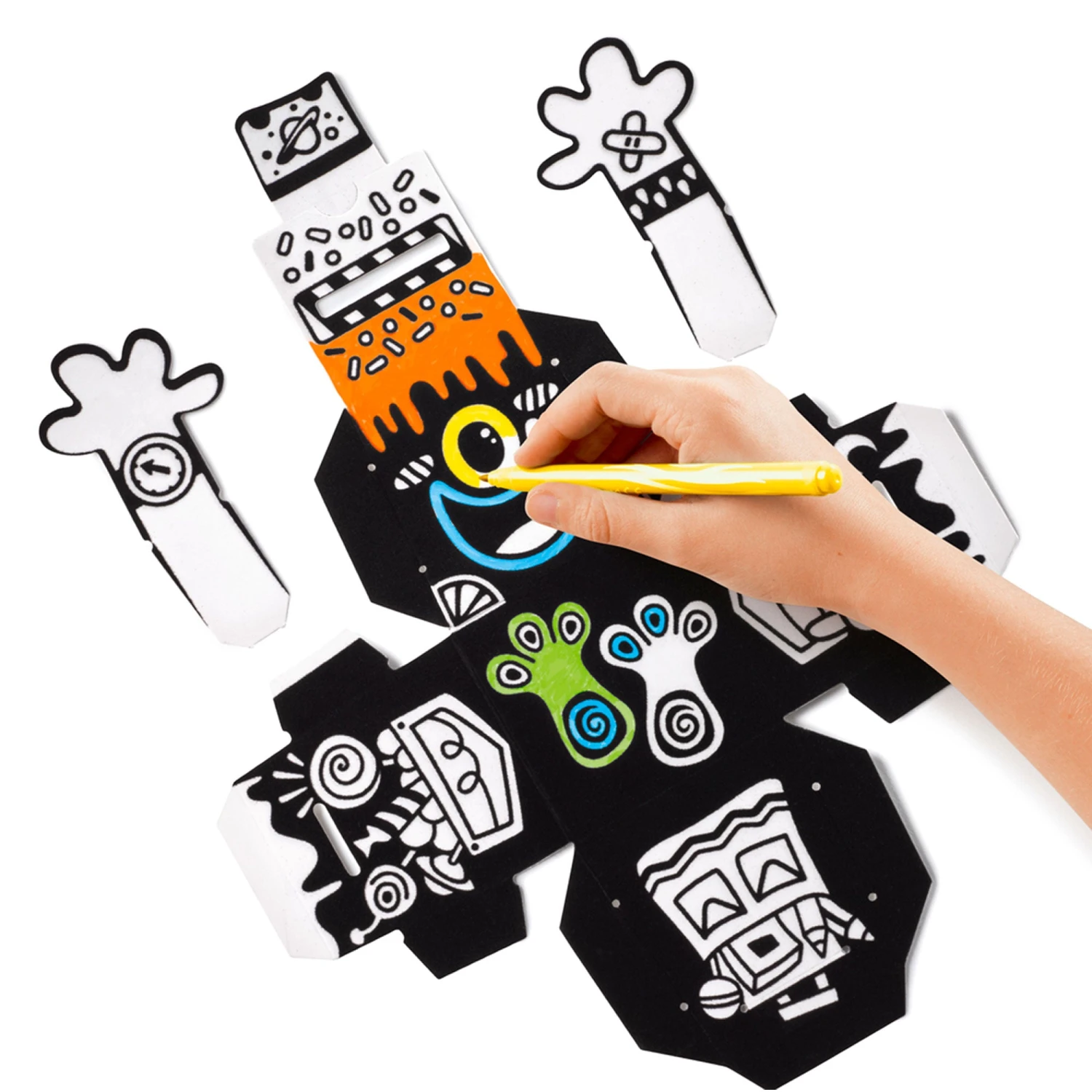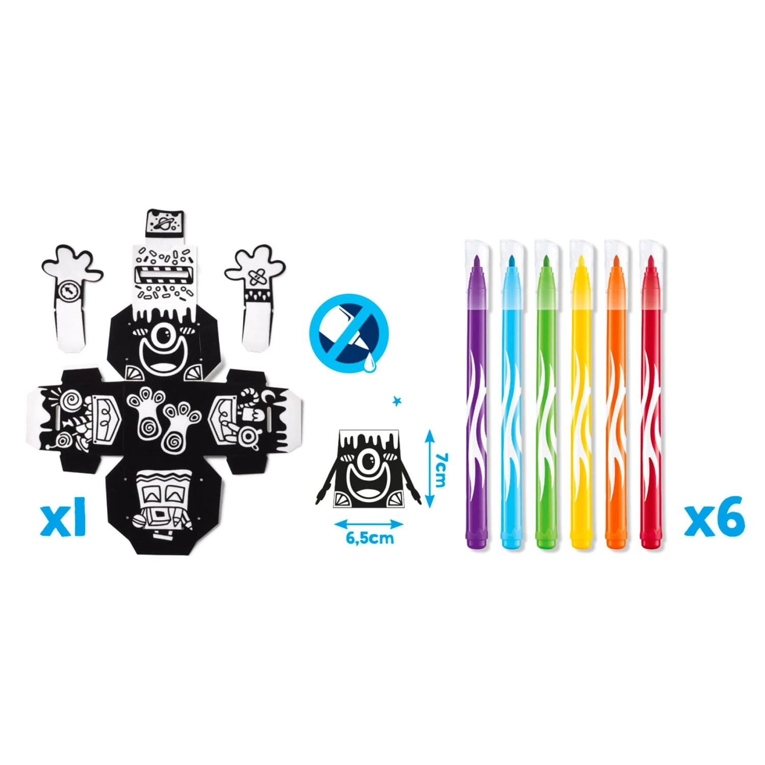 Kids will love letting their imaginations run wild when they use the six provided jungle-themed felt tip pens to decorate their own cute, personal money boxes. Kids can express their creativity and develop their fine motor skills when constructing and colouring the box as they bring the little monster money box to life!