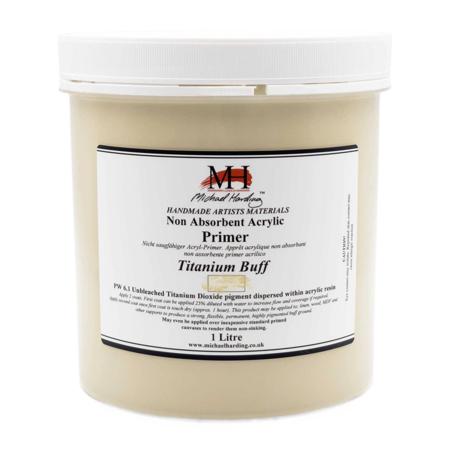 Michael Harding Non-Absorbent Acrylic Primer provides a strong bond to the layers of paint applied, while ensuring they have just enough tooth so as not to be greasy in feel. As a result, after painting upon non absorbent acrylic primer, oil paint colours look as though as they have just been brushed on to the canvas.