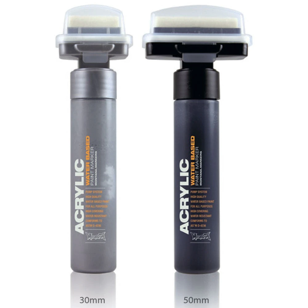 The 30mm amd 50mm Montana Acrylic markers are the widest in the Acrylic marker range. The extra wide felt tips are perfect to create great calligraphic effects on a large scale.
