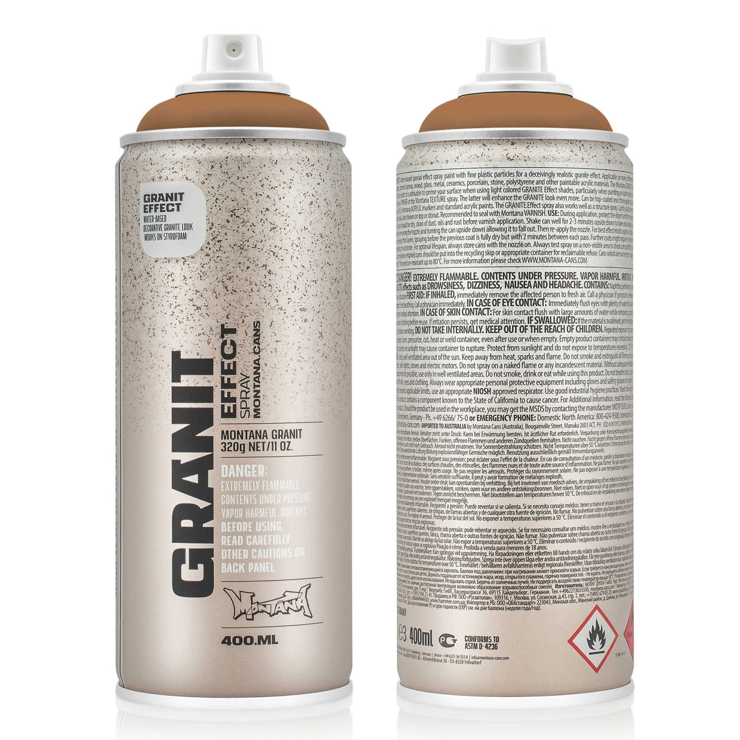 Montana GRANT Effect is a water-based special effect spray paint with fine plastic particles for a deceivingly realistic granite effect. It is applicable on many different surfaces, such as paper, cardboard, primed canvas, wood, glass, metal, ceramics, porcelain, stone, polystyrene and other paintable acrylic materials.