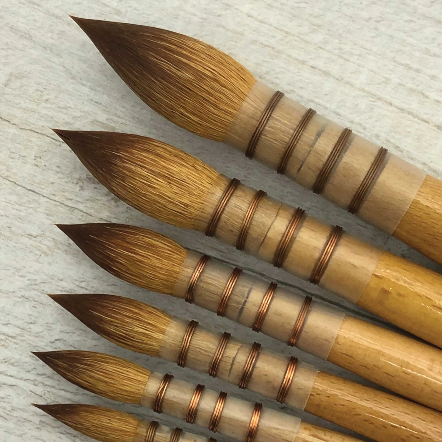 The result… A satisfying blend of synthetic and natural hair manufactured in a traditional wire mop style with a choice of eight sizes. It looks like sable, it feels like sable and it works like sable.