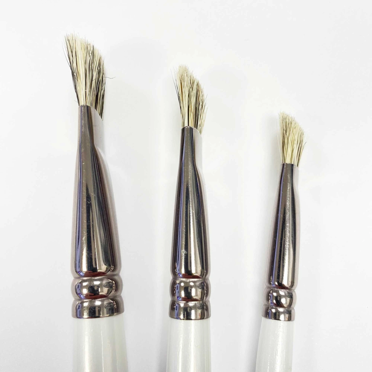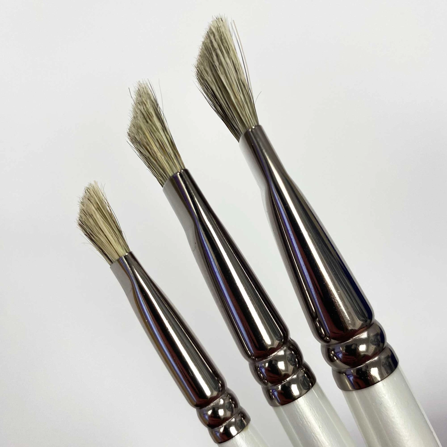 A stiff haired natural brush for stippling trees and foliage, alongside creating textures on buildings and other surfaces.