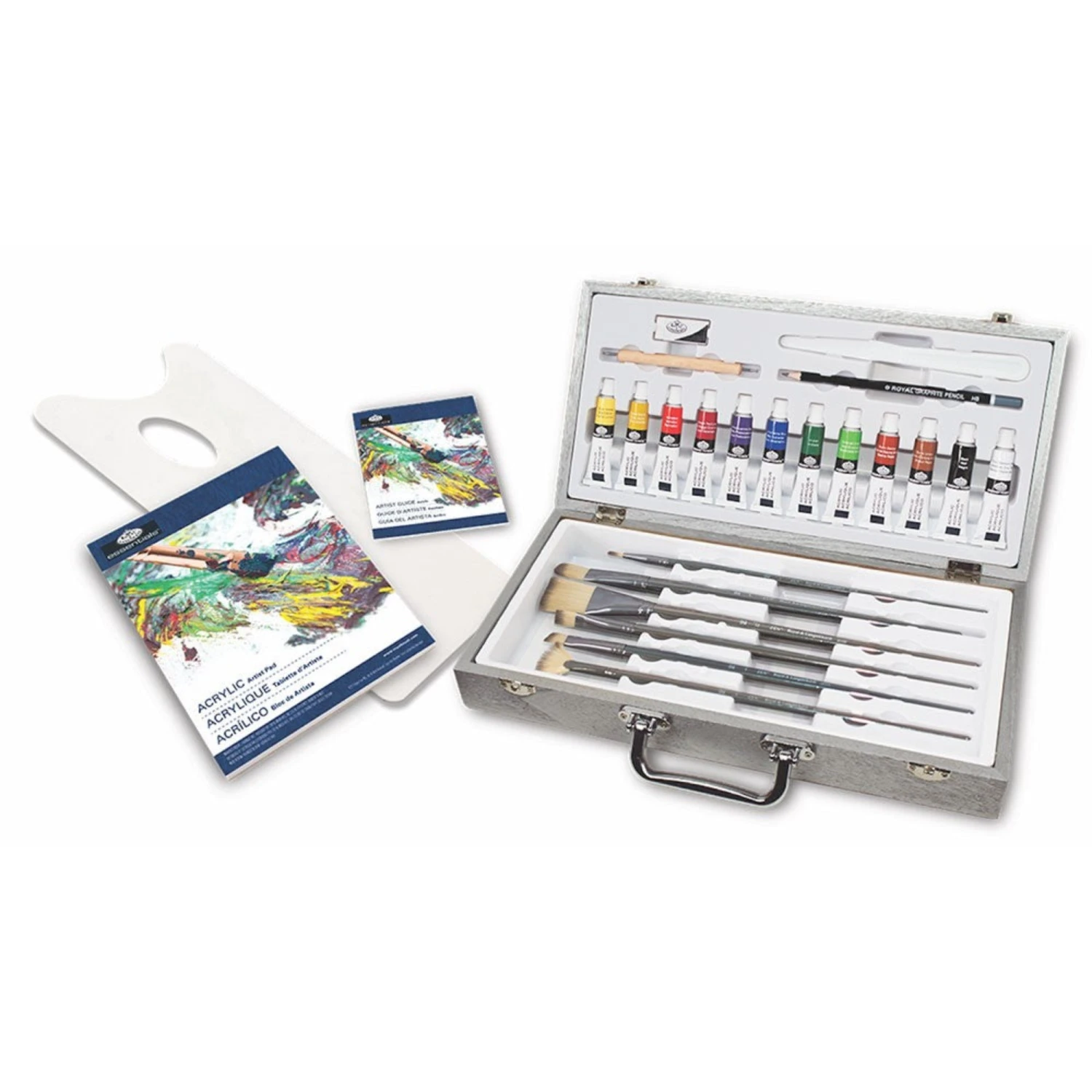 The Royal & Langnickel ‘Essentials’ Acrylic Art Set is a fantastic starting point for new and young artists just entering into the realm of acrylic paint. Offering full spectrum of acrylic colour perfect for colour mixing, alongside a full suite of equipment to get started on painting right out of the box.