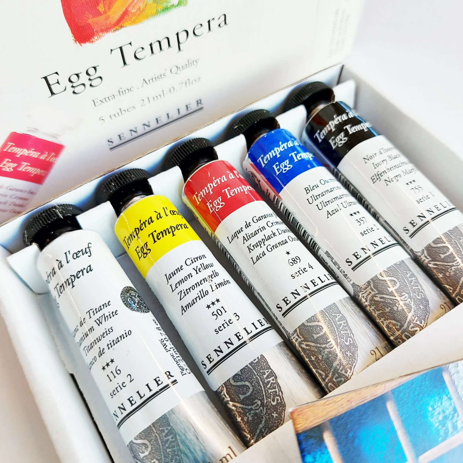 Sennelier Egg Tempera is an authentic formulation of classic egg tempera as used by artists since the Renaissance. Egg tempera is a semi-opaque, water-soluble, and permanent painting medium—wonderful for fine art painting, restoration, and icon painting. Its archival characteristics are excellent as it does not age or yellow like oil paints.