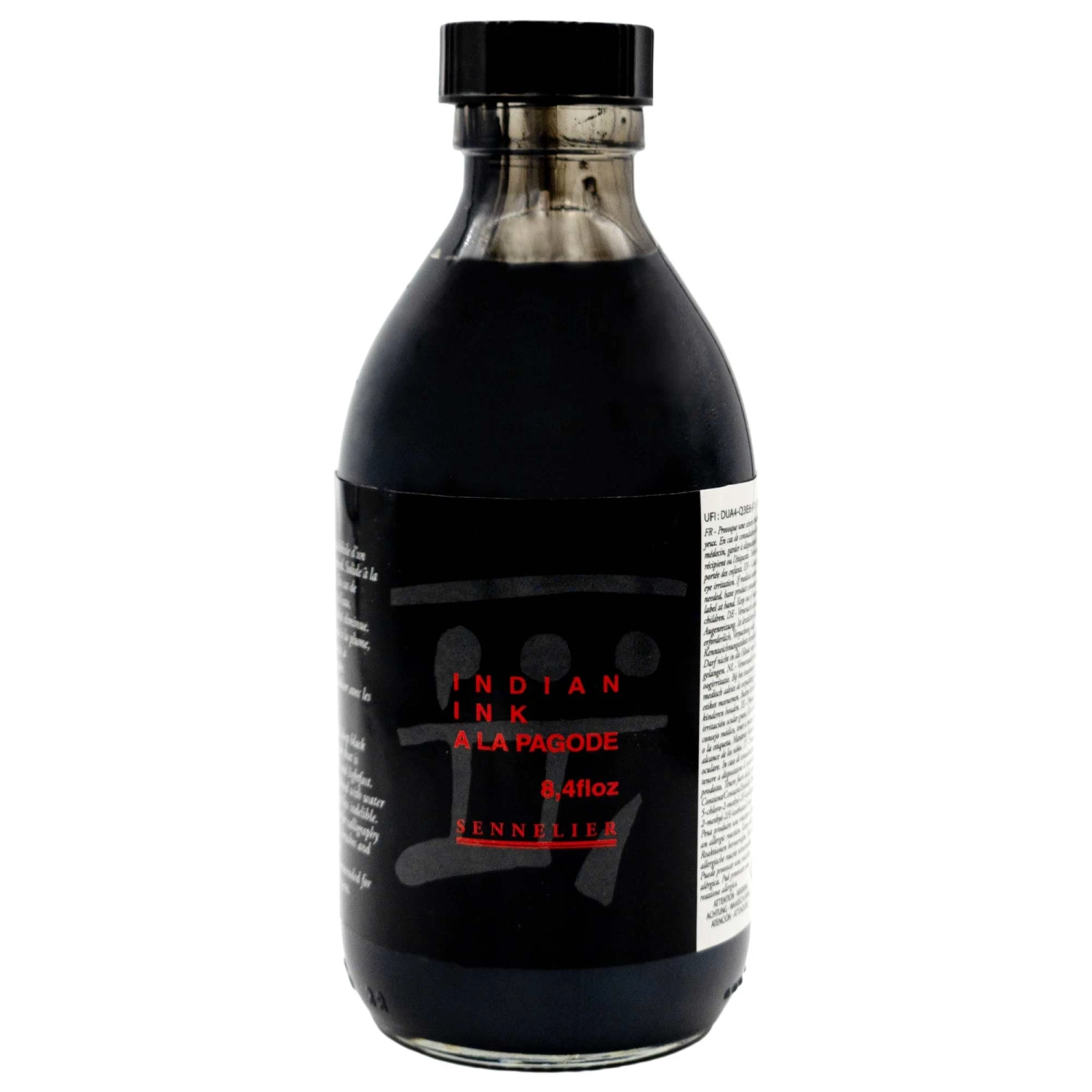 Sennelier Indian ink can be applied with a brush or ink pen, and will give a satin to brilliant film depending on thickness. It dries rapidly and displays a high degree of water resistance, without being indelible.