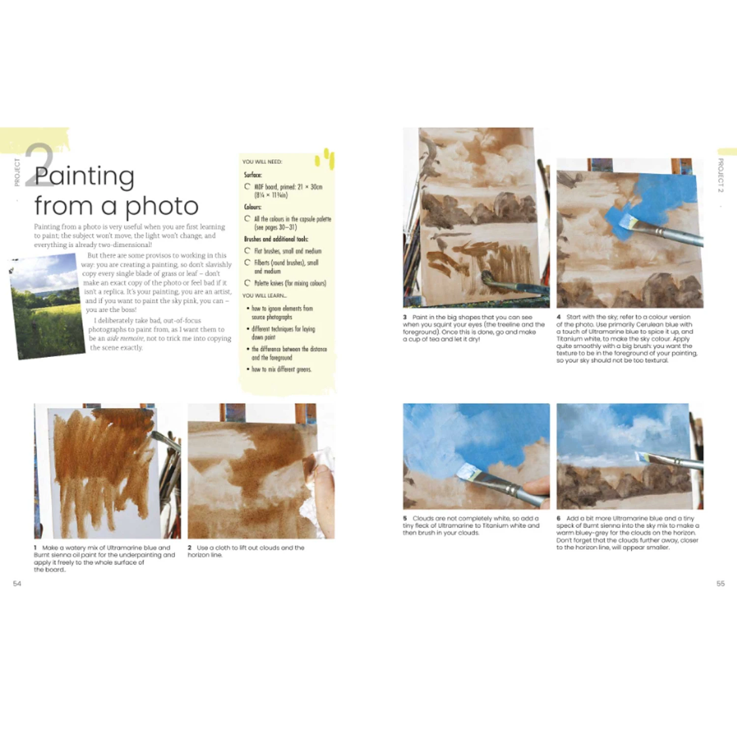 This introduction is followed by several sections on materials, preparation (how to care for your brushes, storing your paints, and so on), colour (selecting your basic, or capsule, palette), mixing the paints and preparing your surfaces. The first project explains how to explore colour in order to paint in the style of Vincent van Gogh.
