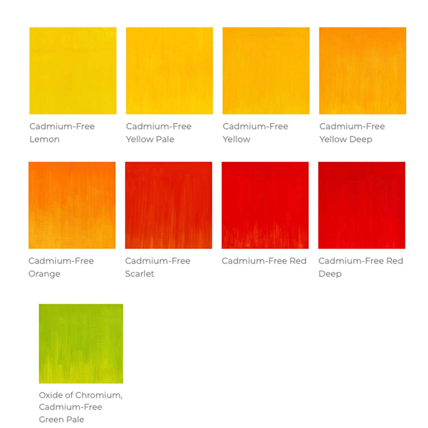 Created by chemists in collaboration with artists. The cadmium free formula was tried and tested by artists to ensure it matched the vibrancy, opacity, lightfastness, and permanence of traditional cadmium colours.Â